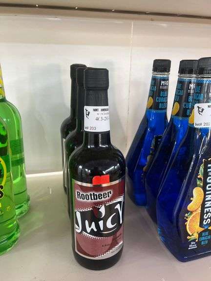 LOT 203 - ROOTBEER JUICY SCHNAPPS LIQUOR 750ML EA. 3 BOTTLES