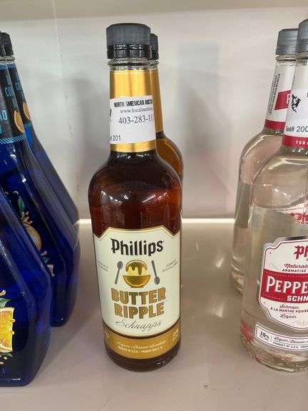 LOT 201 - PHILLIPS BUTTER RIPPLE SCHNAPPS 750ML EA. 2 BOTTLES