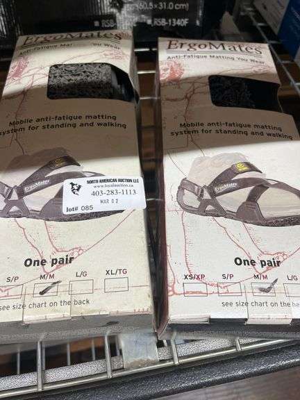 LOT 85 - ERGOMATES ANTI-FATIGUE MATTING SYSTEM FOR WALKING/STANDING 1 PAIR SIZE M *USED* 2 BOXES