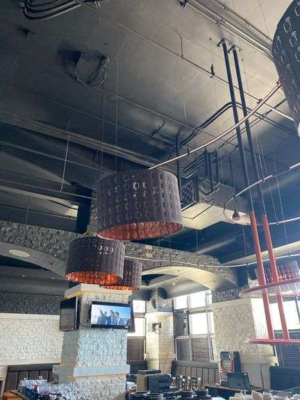 LOT 236 - 7PC ROUND HANGING LIGHTS OVER BAR