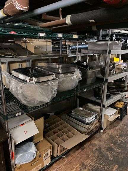 LOT 300 - FULL METAL RAC WITH CONTENTS CHAFING DISHES ETC