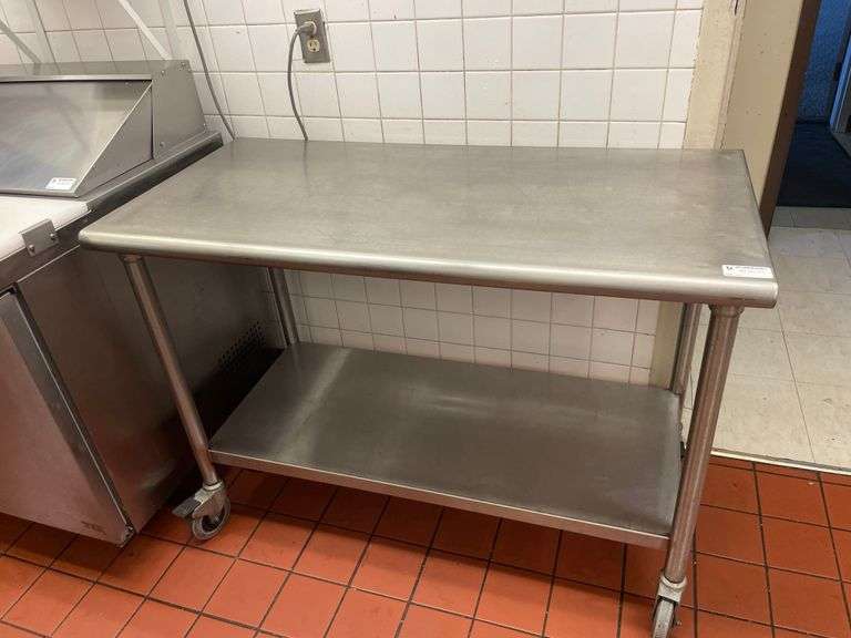 LOT 120 - METALIC KITCHEN TABLE ON WHEELS