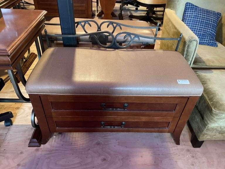 LOT 121 - APPROX. 39IN LEATHER TOP BENCH W/DRAWERS