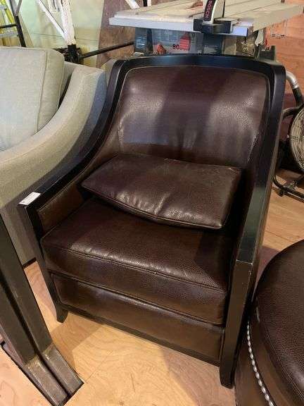 LOT 40 - 'LEATHER' & WOOD SITTING CHAIR W/ PILLOW
